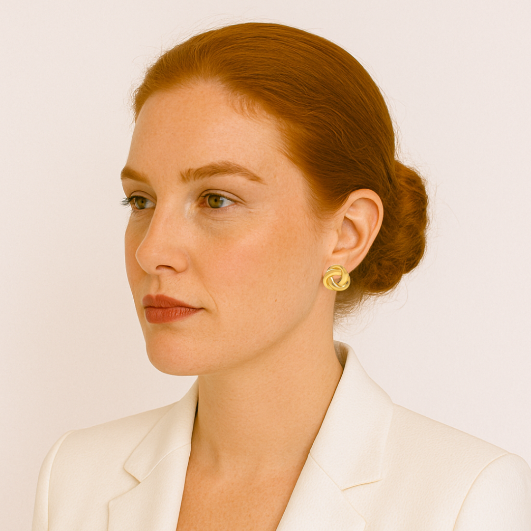 Un clásico reinventado. Estos pendientes en forma de nudo entrelazado simbolizan unión, fuerza y elegancia. Su diseño atemporal en acero inoxidable dorado los convierte en el complemento perfecto para elevar tu look diario o acompañarte en una ocasión especial.