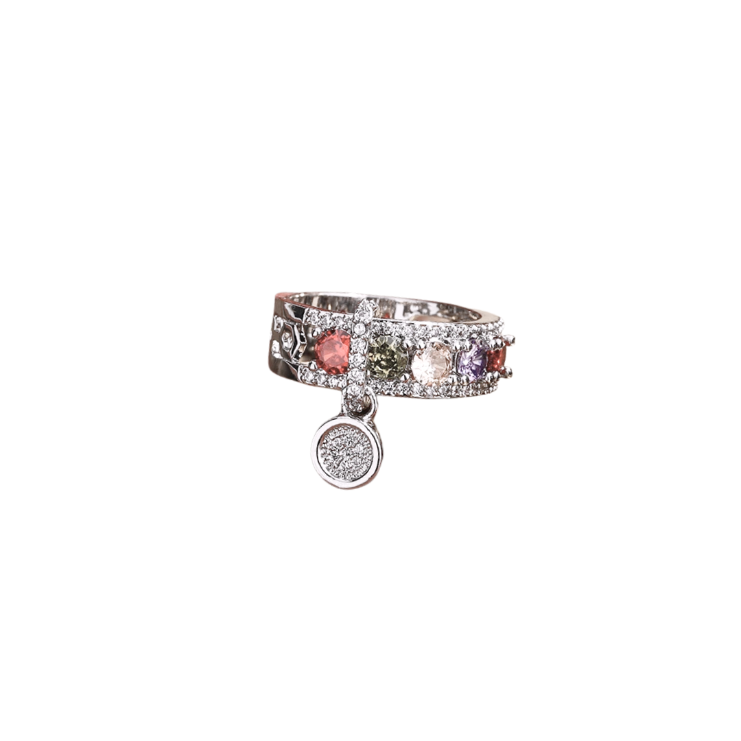 Un diseño atrevido y lleno de energía que se convierte en protagonista de cualquier look. Este anillo, elaborado en Acero chapado en Plata de Ley S925, destaca por sus piedras en tonos vibrantes —rojo, verde, violeta y champagne— que aportan un brillo único y divertido.