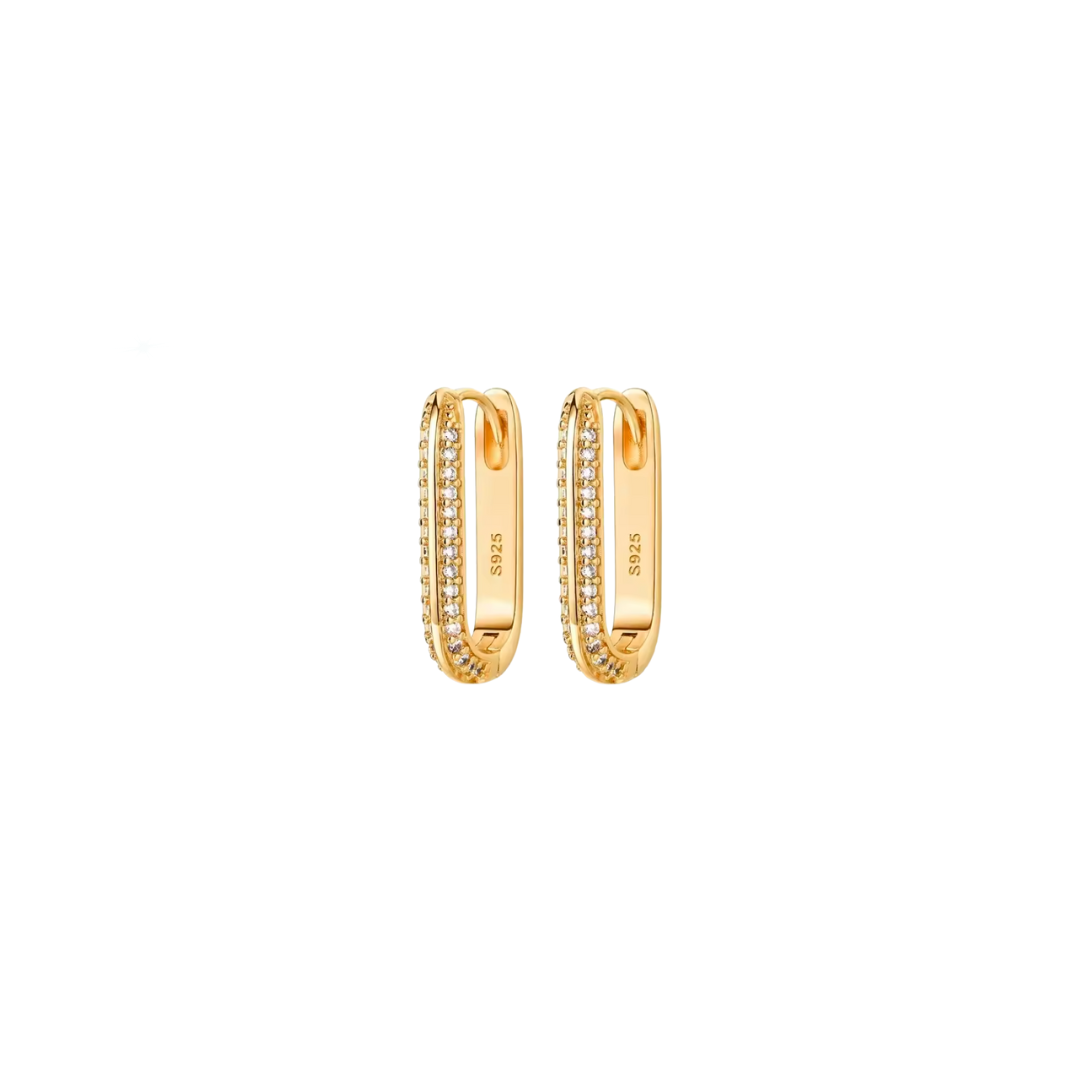 Estos elegantes pendientes de aro rectangular en Plata de Ley S925 están disponibles en dos acabados: plateado y dorado, para que elijas el que mejor vibra contigo. Su diseño sobrio y sofisticado incorpora una delicada línea de circonitas que aportan luz sin exagerar. Son la definición perfecta de versatilidad y estilo atemporal.
