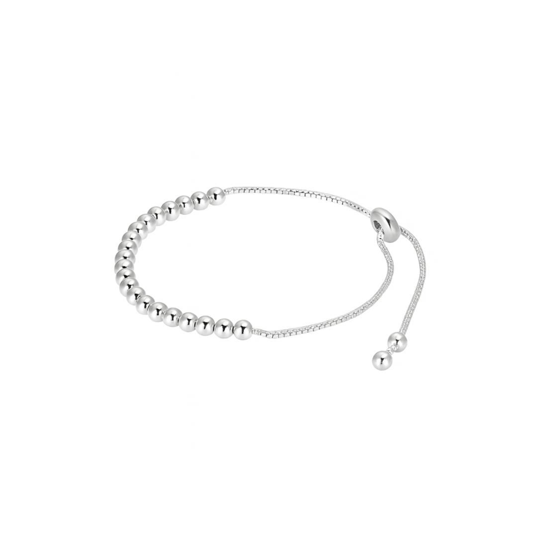 Minimalista, elegante y llena de estilo. Esta pulsera de cuentas esferas en Acero chapado en Plata de Ley S925 combina delicadeza y modernidad en un diseño ajustable que se adapta a tu muñeca con suavidad.